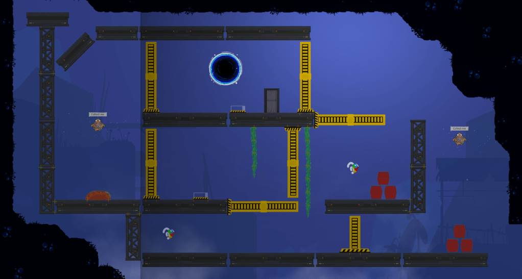 It was important to me to respect the existing design as much as I could, making it possible to clear stages with different kinds of gadgets, allowing the player to make mistakes and still have a way forward, etc. I wanted to treat the levels as experiments, both for myself and the project overall, for what worked well with the gameplay. This was especially the case for the second level.