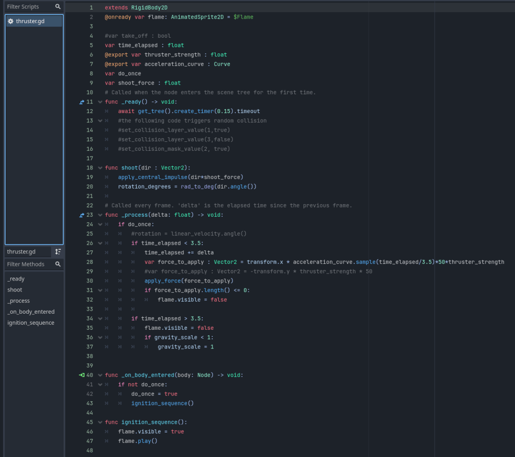 I looked at the existing gadgets and found some common patterns. There were gadgets that pulled and pushed objects, those that damaged level elements and those that were out there not really fitting into those two categories. One thing that I felt was missing when playing and that could open interesting designs for levels, were rocket boosters.